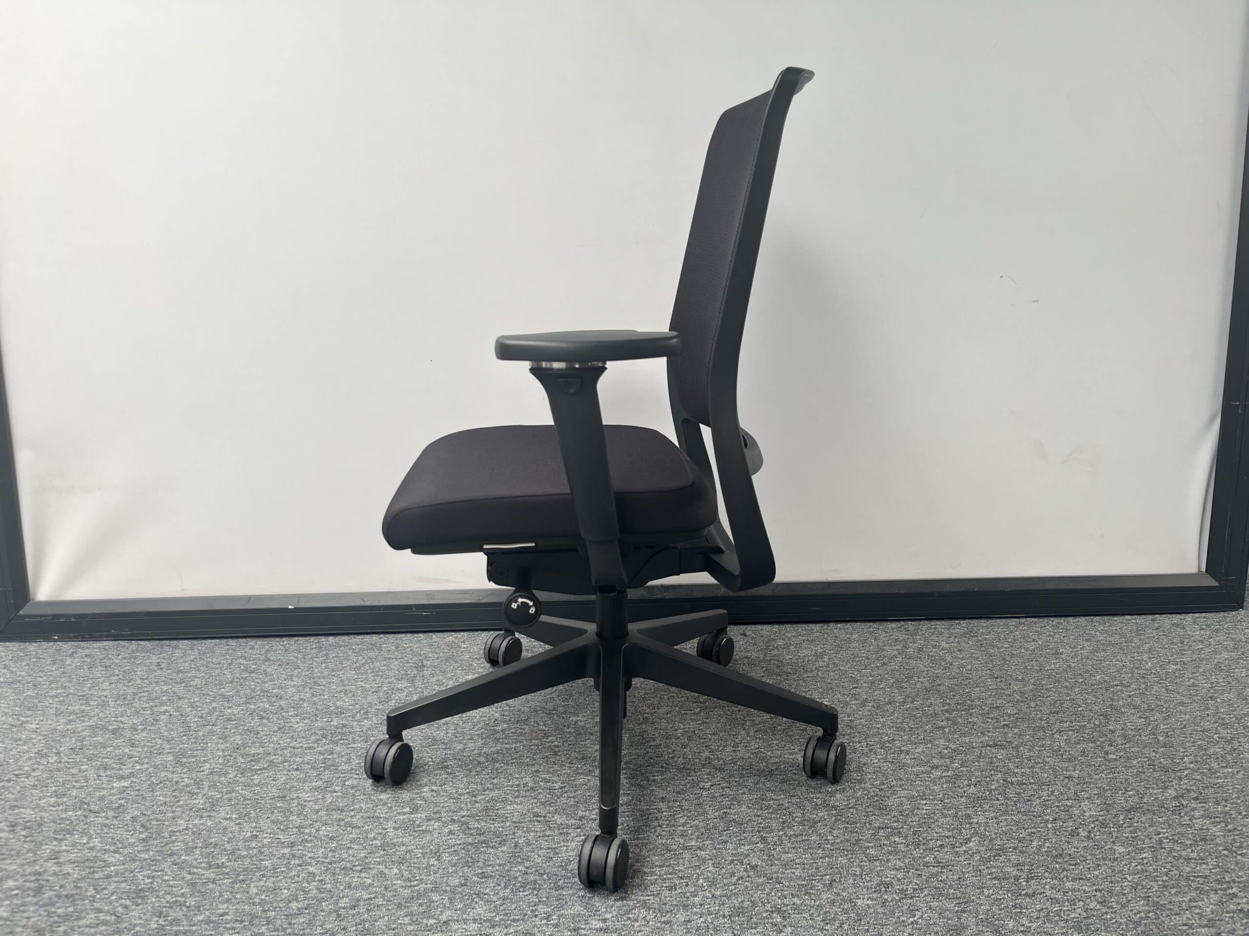 Ergonomische bureaustoel van het merk Gispen met een stoffen zitting en een mesh rug leuning. Deze bureaustoel is op veel verschillende manieren in te stellen zo is de zitting in hoogte en diepte instelbaar, de rugleuning in hoogte instelbaar en zijn de armleuningen zowel in diepte als breedte instelbaar. Dit is allemaal erg belangrijk om de stoel zo prettig mogelijk te laten zitten en om bij veel zit uren pijn en last te voorkomen.