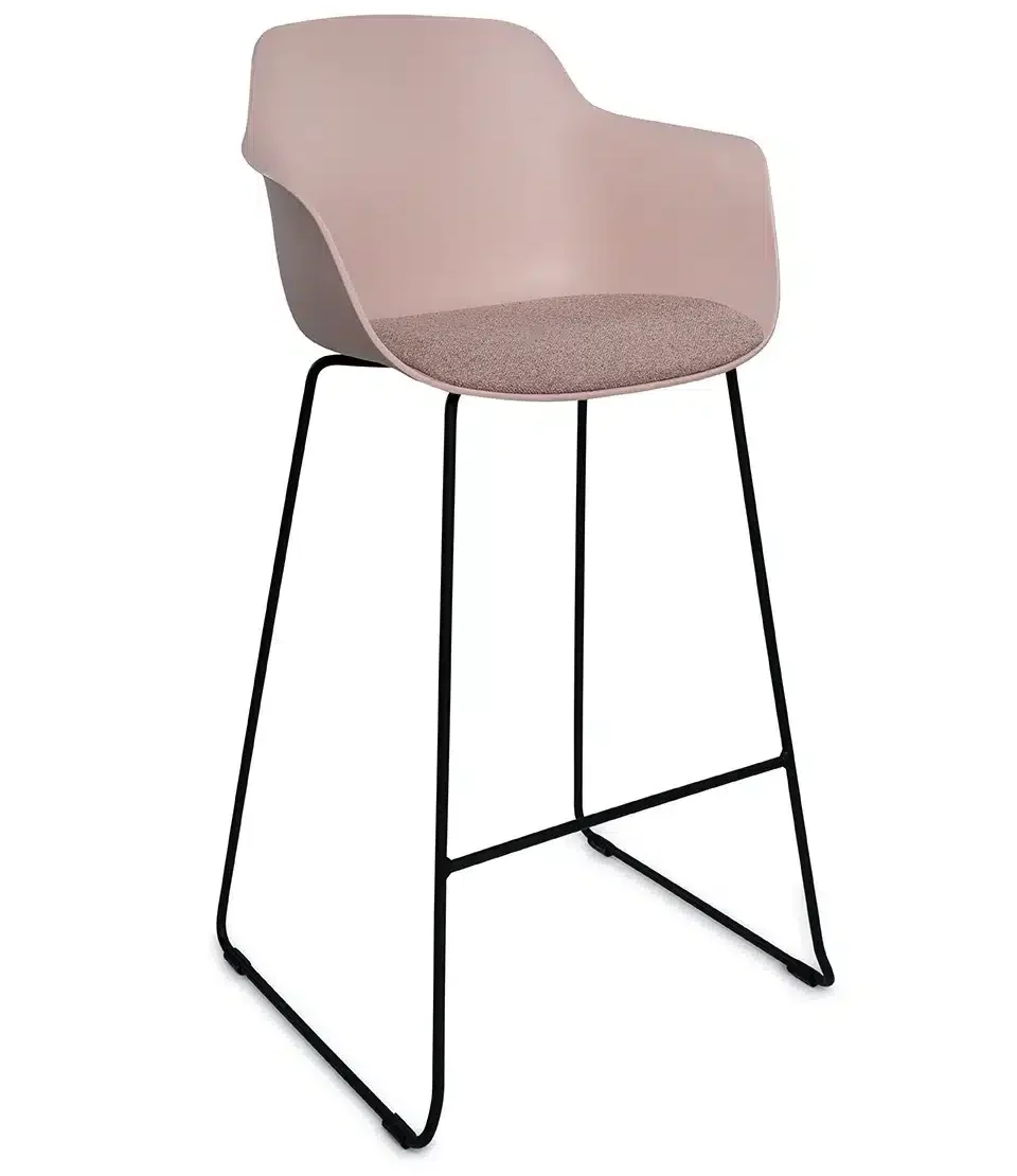 Deze barkruk heeft een mooie uitstraling en past perfect in ruimtes als barkruk of als normale kruk. Deze kruk heeft veel verschillende combinaties van kleuren, namelijk Taupe, Roze, Groen en Zwart. De barkruk bevat een kuip en een zitkussen, dit zorgt ervoor dat je zo comfortabel mogelijk zit in je stoel en geen klachten krijgt aan je rug. De frame van de stoel heeft een zwarte kleur met daarbij een hoge rug wat handig is voor wat langere mensen. De zitschaal is ook gemaakt van een duurzame stof waardoor wij ook weer een steentje bijdragen bij het mileau.