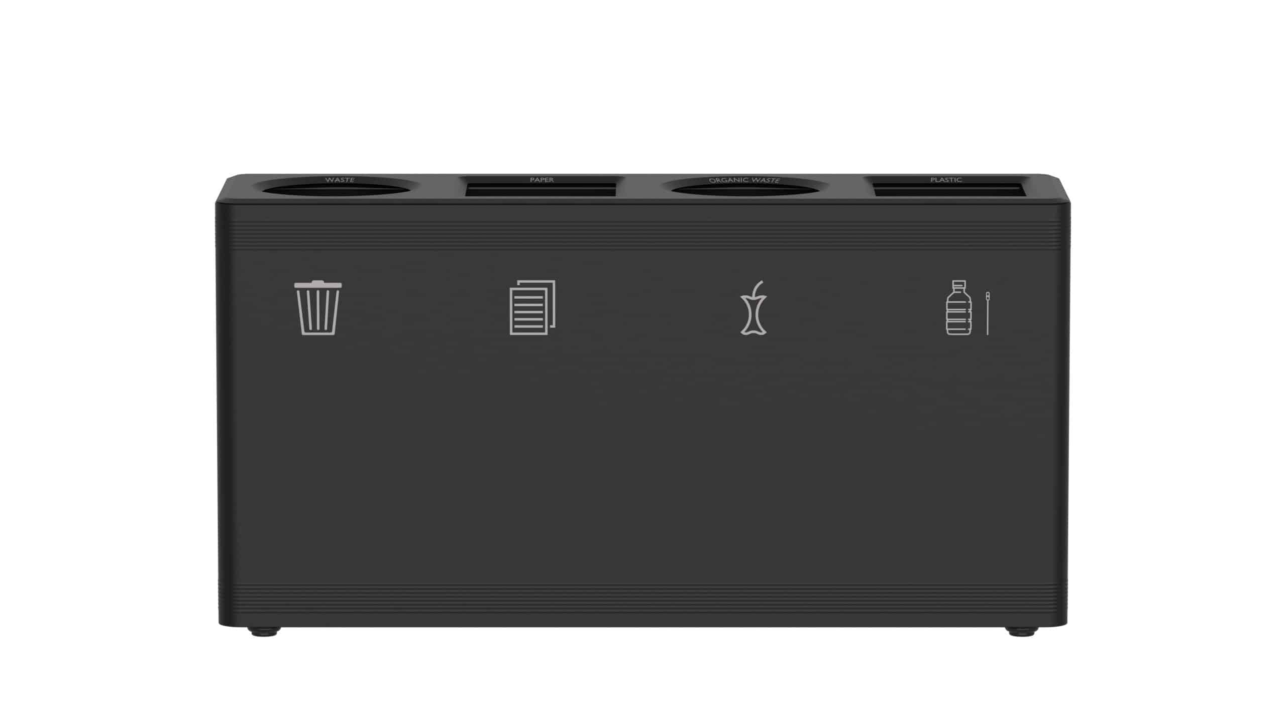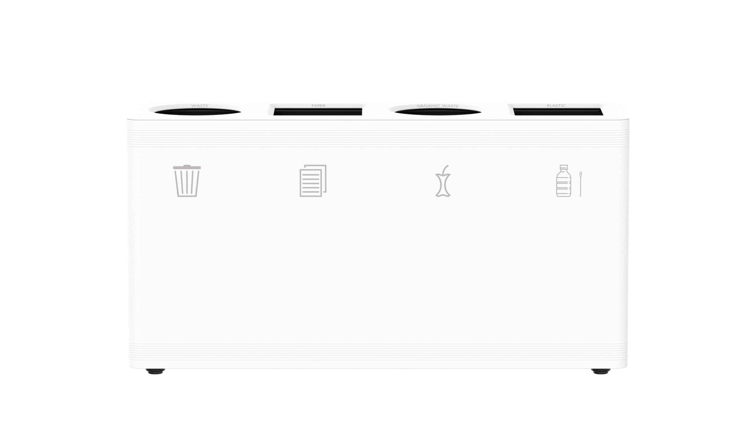 De Prullenbak – Ditch 4 van het Nederlandse merk Functionals is een hoogwaardige afvalscheidingsunit met vier compartimenten, speciaal ontworpen voor omgevingen met een hoge afvalstroom zoals kantoren, scholen of publieke ruimtes. De stalen behuizing is afgewerkt met een duurzame, fijn gestructureerde poedercoating en verkrijgbaar in 5 diverse kleuren. Elk compartiment heeft een volume van 90 liter – ideaal voor gescheiden inzameling van restafval, papier, plastic en organisch/statie geld.